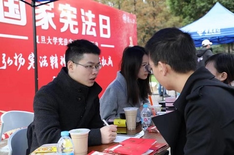 当天,复旦大学法学院、复旦大学学生法律援助中心还在志德书院举行宪法日特别活动,通过普法表演、分发普法宣传册、《中华人民共和国宪法》等形式,普及宪法知识以及常见法律问题,展现学生法律援助活动的特色、传播法律援助的公益理念。