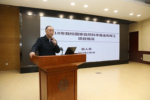 会上,金力从2018年科技工作新突破、学校科技工作短板以及2019年科技工作重点三部分全面介绍了学校科技工作情况,重点分析了学校科技发展的短板,并提出要在培育重大原创研究项目、结合上海科创中心建设推进国家级科研平台培育和新建、提升服务国家战略和地方的能力、争取更多标志性成果和奖项等方面持续发力。张人禾、周亚明分别围绕国家自然科学基金和军民融合科技、学校人才政策等主题进行了详细分析和介绍。科研院专门就院系投入产出情况进行了分析。