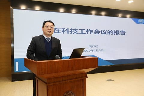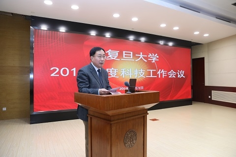 2019年1月3日,复旦大学2018年度科技工作会议在光华楼召开。校长许宁生出席会议并讲话。副校长金力、周亚明、张人禾分别作工作报告。会议由常务副校长桂永浩主持。