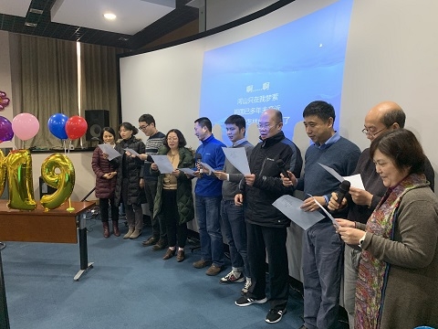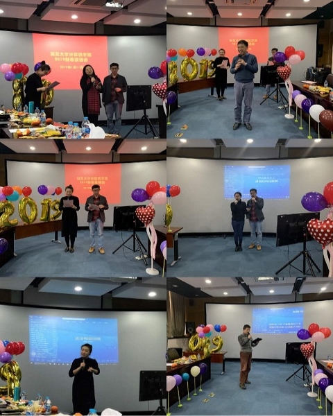 1月11日下午,计算机科学技术学院2019年教职工迎新春茶话会举行。会场内座无虚席,在老师们的热烈掌声中,计算机科学技术学院党委书记许晓茵、院长王晓阳先后致辞,为大家送上温馨的新年祝福。网红科普作家兼音乐达人“平猫”张军平老师和上海音乐学院古筝女神王秦老师搭档主持。