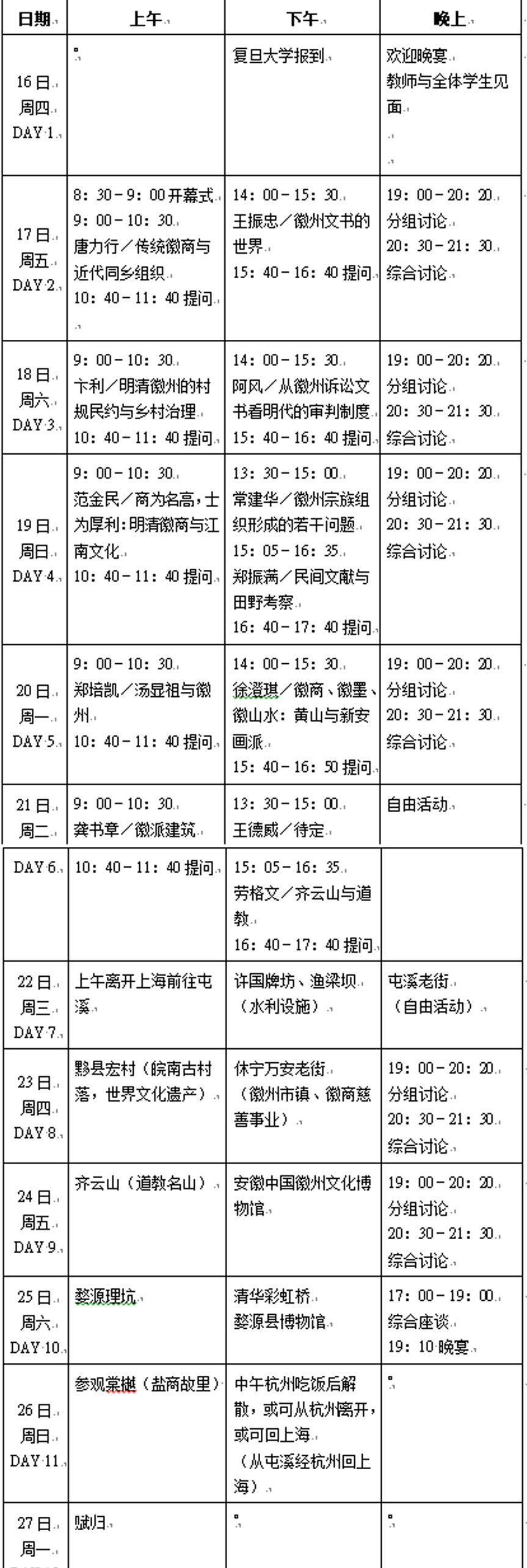 这次由史语所、蒋经国基金会、复旦大学文史研究院和宋庆龄基金会等单位合办的“第二届两岸历史文化研习营──徽州”,希望借着走进历史现场,经由田野考察和文献研读,对某一地域的历史文化有切身和更深刻的体认。这个研习营将以两岸的博士生和年轻学者为主要对象,延续“第一届两岸历史文化研习营──巴蜀文化”的基本设想,我们一方面强调文献阅读和田野考察的结合,一方面也希望从不同的学术视野和学科训练来了解徽州的社会与文化。因此,在课程的规划上,除了徽州社会史的不同面向,我们也将宗教、戏曲、建筑、艺术与文学一并纳入,希望能藉此更趋近徽州社会与文化的原有复杂面貌。