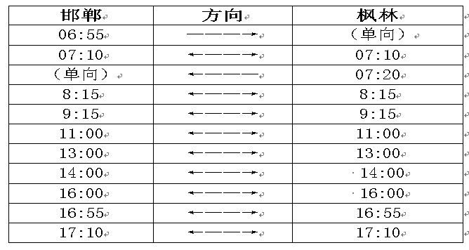 根据校办2013年寒假放假通知的时间安排,我校班车邯郸—枫林线路时刻,作如下对应的调整: