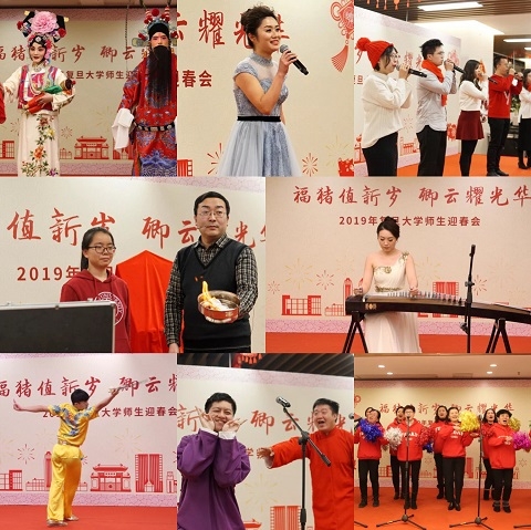 玉犬辞戌岁,福猪迎亥春。1月25日、26日晚,2019年复旦大学师生迎春联欢会在邯郸校区和枫林校区分别举行。校党委书记焦扬,常务副校长桂永浩、校党委副书记袁正宏、刘承功、尹冬梅,副校长张志勇、周亚明、陈志敏、徐雷,以及学校相关部处、院系相关负责同志、院系教师代表和留校学生千余人欢聚一堂,辞旧迎新,共庆佳节。上海市教育委员会副主任倪闽景出席了25日在邯郸校区举行的迎春会并致辞。