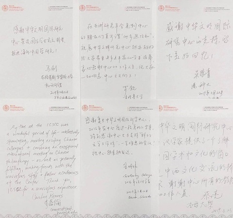 值得一提的是,中心也借此展会契机,与参加年会的中心访问学者取得联系,沈丹森(Tansen Sen)、吴盛青、李嘉伦(Caroline Reeves)、马钊、蔡亮、宋明炜、张月、范鑫教授等中心的“老朋友们”闻讯前来展台,追忆往昔,畅叙友情,交流分享近况和研究心得,并为中心写下感言与寄语,其乐融融。