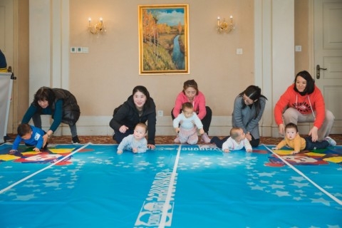 在亲子活动开始前,小丑叔叔在签到处给每个宝宝都准备了小礼物,工作人员根据宝宝的月龄进行分组并发放了不同的参赛臂贴。活动为不同年龄段的宝宝们开设了绘本故事区与亲子游戏区,在专业老师的带领下,爸爸妈妈陪伴着宝宝在美妙的音乐中边玩边学,在五彩的绘本里尽情徜徉,轻松快乐的氛围中也启发了孩子的想象力与创造力。最受关注的爬行赛是按年龄段分别展开的,各个家庭使出浑身解数,激励宝宝爬到终点,赛道上洋溢着欢乐温馨的氛围,宝宝们也通过自己的努力赢得了代表成长的第一份证书。活动结束后,公共卫生学院教授张蕴晖和史慧静共同为参与家庭和获奖宝宝们进行了颁奖与合影留念,将欢声笑语定格在了这一美好的瞬间。