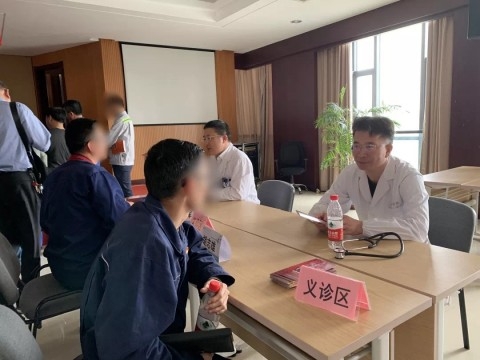 培训会后,龚辉、胡志雄、申捷、张源龙为广大员工提供了医疗咨询和义诊活动。义诊现场气氛热烈,秩序井然。平时忙于工作,对自己的健康疏于管理的员工们,抓住大咖专家上门服务的难得机会,寻医问诊。无论是简单的医疗咨询,还是复杂的病情问诊,专家们始终耐心仔细地倾听,细致详细地查体,不厌其烦地对每一个提问给出专业的解答和建议。龚辉更是自带神器“掌上心电”,咨询者只要双手拇指神器上一搭,心电图图像立马呈现于手机上,大大提高了现场诊断能力。