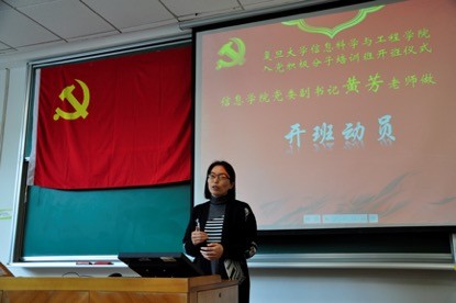 4月19日下午,信息科学与工程学院(以下简称信息学院)入党积极分子培训班开班仪式举行,复旦大学特邀党建组织员、原信息学院党委书记朱建艺和信息学院党委副书记黄芳出席仪式,信息学院党建核心组指导老师邢儆主持。