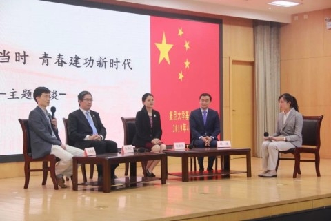 在主题访谈环节,朱畴文、钱菊英、占昌友和杨逸分别围绕医学生关心的成长成才的问题作了分享,为医学生讲述他们学生时代的青葱岁月和“为人、为学、为师”的精彩故事,在课堂之外带给医学生人生的智慧,激励医学生秉持医者初心上下求索不懈努力。嘉宾们妙语连珠、金句迭出,赢得了全场听众的阵阵掌声。