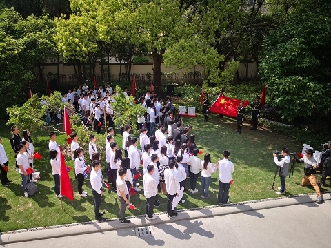 不忘初心跟党走,青春建功新时代。5月4日上午,位于国福路51号的《共产党宣言》展示馆前,红旗招展,春机勃勃。复旦大学学生纪念五四运动一百周年主题教育活动正在举行。