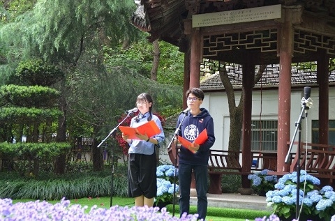揭牌仪式上,复旦大学新闻学院党委相关负责同志宣读了《复旦大中小学德育一体化倡议书》,院、校、区领导为“复旦大学新闻学院‘三全育人’复旦中学基地”揭牌。复旦大学新闻学院学生代表游天航及复旦中学学生代表吴雨欣联袂献上诗朗诵《复旦之门》,复旦大中两校学生代表共同奏唱团歌。