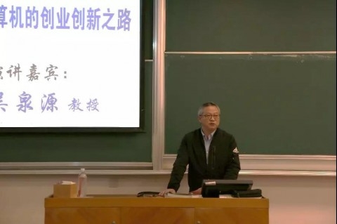 报告中,吴泉源从自身研究经历与研究成果出发,为师生介绍了超级计算机的定义及其应用领域,“银河一号”超级计算机从自主创新预研到横空出世的启示。他全方位展示了我国第一台超级计算机的研发之路,及从军工科研成果向核心战斗力转化的历程,并介绍了后续银河2-6号的研发成果,直至天河二号代表中国首次登顶世界超算排行榜第一名。他动情地总结道,“银河一号”创新创业之路中体现了可贵的“银河精神”,即胸怀祖国、团结协作、志在高峰、奋勇拼搏,也带给后来者很多启示,要立足应用驱动,善于抓住机遇、勇挑重担,在实践中干字当头、奋勇拼搏等等。