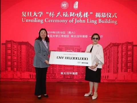 5月18日上午,“林太珏环境楼”揭幕仪式在复旦大学江湾校区举行。仪式上,华侨林太珏家属向复旦大学捐赠八千万元,用于支持复旦大学教育事业发展。