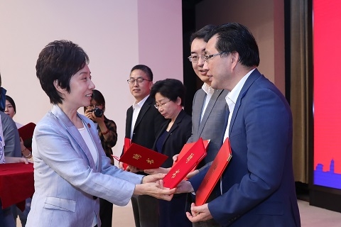复旦大学聘请中国宝武王军、王语、冯爱华、陆匠心四位同志担任校外辅导员,中国宝武聘请复旦大学芮明杰、张晖明、李劲、唐亚林四位教授担任企业顾问。会上,校外辅导员、企业顾问聘任仪式举行,焦扬、刘福广、陈德荣向受聘者颁发证书。