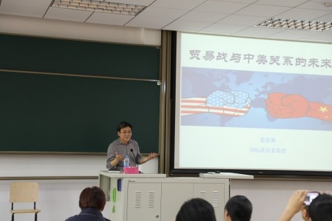 张建新的讲课深入浅出、幽默风趣,却又严谨透彻、发人深省,在场教职工们在课堂上也能深深感受到中美贸易摩擦背后大国博弈的紧张态势,并全方位了解了贸易摩擦与中美关系对世界经济、政治和安全各方面的影响。讲座现场掌声阵阵,教职工们更深刻地理解到在涉及国家和中华民族根本利益的问题上,大家要勇敢面对,纷纷表示在这样的时刻,我们会更加紧密团结在以习近平同志为核心的党中央周围,凝心聚力、努力奋进,共克时艰,相信胜利必将到来。同时,张建新的生动讲授作为思想政治教育课程,也为学院课程思政建设提供了很好素材与参考。
