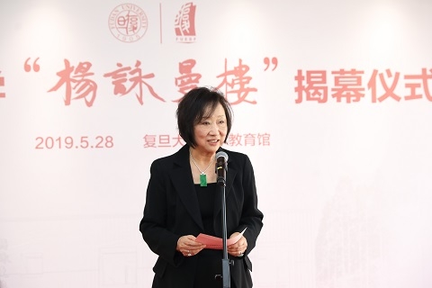 许征在致辞中感谢杨咏曼对学校事业的大力支持,“杨咏曼楼”作为改造修缮后的复旦大学艺术教育馆,是学校艺术教育的重要场所,在发挥艺术育人工作中发挥重要作用。她以杨咏曼爱国爱港、艰苦创业、捐资助学的高尚情怀,激励广大复旦师生不忘初心、不负所托、砥砺前行,为早日建成世界一流大学而携手共进。