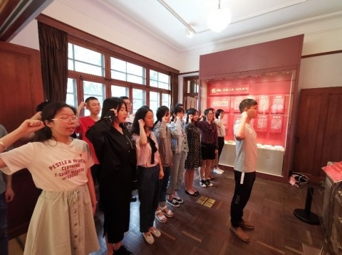 7月2日,数学科学学院学生党总支举行主题党日活动,组织2019年新发展党员集体前往《共产党宣言》展示馆暨陈望道旧居参观,并进行集体宣誓。