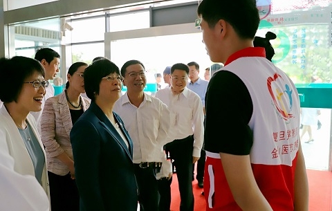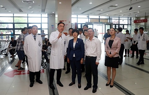 宗明一行查看了儿科一体化门急诊等医院的门诊和急诊部门以及院史长廊等处,对医院的医联体运行、学科建设、人才培养和医疗服务等进行实地调研,了解医院的工作运行情况,并与医务人员进行了交谈。