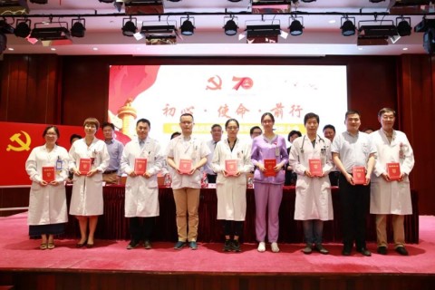 邹和建宣读表彰决定和表彰名单。胰腺外科主任傅德良荣获上海市教卫工作党委系统优秀共产党员称号,外科一党支部荣获复旦大学先进基层党组织称号,神经外科一党支部书记顾宇翔荣获复旦大学优秀党务工作者称号,骨科石晶晟、皮肤科徐金华、2018级博士生盛旦丹荣获复旦大学优秀共产党员称号,机关一、北院护理外科、外科一、护理综合、后勤、神经内科、门诊、2018级博士生等8个党支部荣获华山医院先进党支部称号,郑敏华、陈文钧、殷保兵、邬剑军、尹波、杜娟、王兵、顾静文等8名同志荣获华山医院优秀党务工作者称号,袁燕等65名同志荣获华山医院优秀共产党员称号,受到隆重表彰,院领导共同为获奖者颁奖。