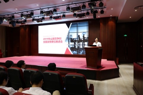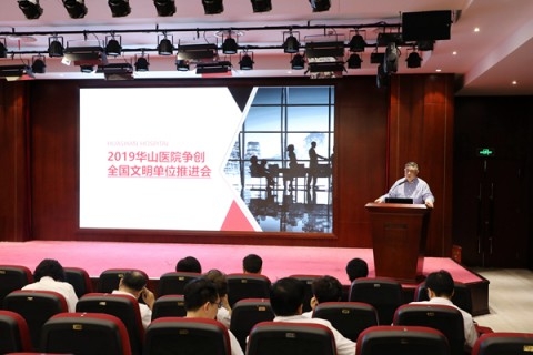 8月5日,附属华山医院举行2019年精神文明推进大会。华山医院党委副书记耿道颖为全院中层干部作争创全国文明单位推进动员讲话,强调精神文明建设与医院文化建设的重要意义,用过去三年医院精神文明建设的丰硕成果激励医务人员积极开展、支持“创全”工作。