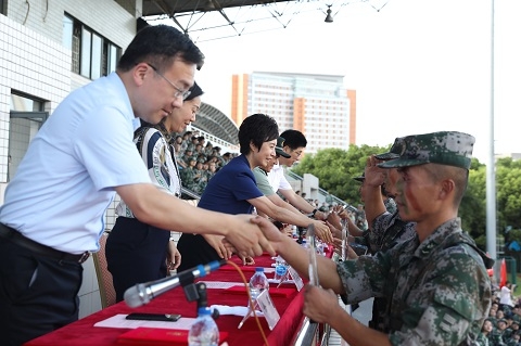 承训部队首长对2018级复旦学子们在两周军训期间的刻苦训练给予了充分肯定,同时勉励大家在今后的生涯中持续以军训的严格标准要求、规范自己,为国家作出贡献。