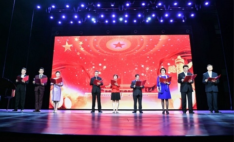 90分钟的演出,通过诵读、演唱、话剧等不同艺术形式,从不同角度讴歌党、讴歌祖国、讴歌人民,回顾栉风沐雨、砥砺前行的中国,细数七十年波澜壮阔的征程和七十年春华秋实的收获,更以无比喜悦和振奋之情,共同庆祝70年来新中国取得的光荣成就。
