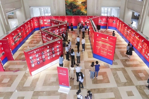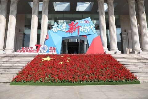 在邯郸校区光华楼台阶正中,鲜红的花朵和金黄的五角星组成了一面巨幅五星红旗。展览入口处,“壮丽70年 奋进新时代”“复旦大学庆祝新中国成立70周年主题展”的标语赫然在目。就在光华楼二楼志和堂,复旦大学庆祝新中国成立70周年主题展已拉开帷幕。直至10月15日,师生们皆可漫步在“迎接新中国”、“建设新大学”、“迈向新世纪”、“奋进新时代”的四大主题篇章中,感受复旦伴随祖国繁荣而发展,伴随民族崛起而腾飞的历史轨迹,唤醒初心与使命。