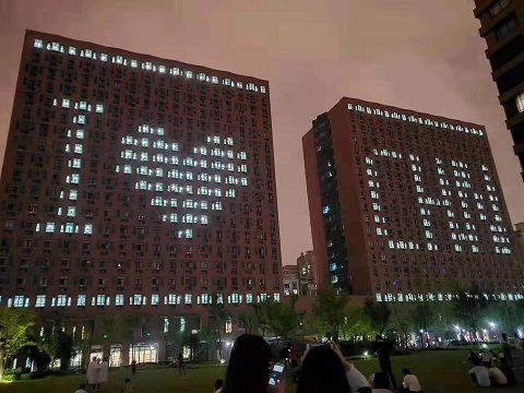 白日褪去,枫林校区学子的创意却更显夺目。通过亮灯与灭灯的组合,9月30日晚,枫林学生公寓楼朝北一侧拼出大幅“I❤CHN”图样,成为了夜幕下最暖心、最特别的景致。