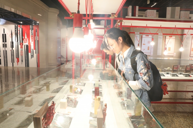 “承传统、新工艺、新材料”也成为了此次展览给观展师生留下的深刻印象。参观展览的复旦大众印社的创社学生骨干倪源蔚说,“篆刻的发展历来离不开技术的变化。在高速发展的当今社会,‘印记中国’向我们展示了用机械、激光甚至3D打印完成印章的可能性,拉进了传统篆刻艺术与大众的距离,未来可以把更广阔的人群纳入到篆刻艺术的审美和创作话语体系之中!”