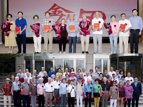 9月29日下午,复旦大学2019年敬老节庆祝大会举行,表彰先进,纪念金婚,引导离退休教职工在新时代、新征程发挥正能量,向新中国成立70周年献礼。