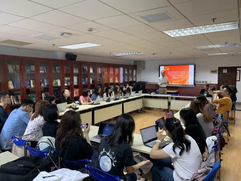 大英部研究生教工党支部围绕“不忘初心、牢记使命”主题教育,结合新中国成立 70 周年等主题开展集中学习活动,将主题教育的精神要求和研究生大学英语课程建设、教育科研各项具体工作有机结合,深入开展学习研讨。