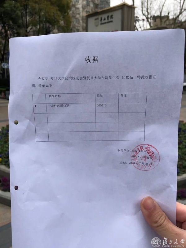了解到上海各医院派出医务人员支援武汉,物资可能也急需,身为复旦台生会会长的这位复旦上医临床医学生立即号召台湾学生参与募捐。一呼百应,号召很快得到复旦大学在校台生、复旦大学台湾校友会的积极响应,上海其他高校台生得知后也主动参与,募捐、采买口罩、与上海各大医院建立联系……终于,第一批5000片医用口罩顺利送抵华山医院。