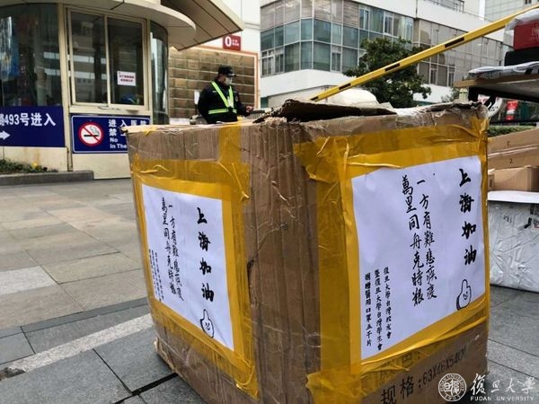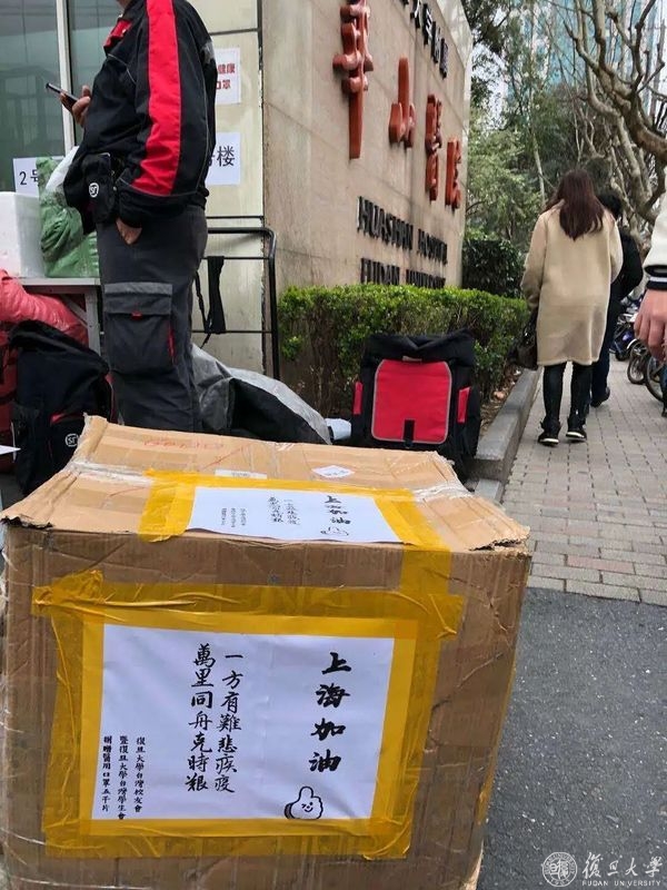 “一方有难悲疾疫,万里同舟克时艰!”由一位复旦大学上海医学院临床医学学生发起、复旦大学台湾校友会暨复旦大学台湾学生会捐赠的5000片医用口罩,今天送达复旦大学附属华山医院。