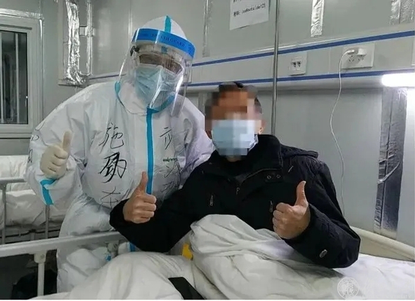 入院时,这对夫妻核酸检测一个阳性、一个阴性。我在接收他们的时候,仔细看了病史和CT片,认为阴性的丈夫其实也是临床诊断病例。在床位紧张的情况下,就把他们放在了同一间病房。每天我和同事都会进去查房,安排检查,调整药物。同时也会和他们拉拉家常。在每天的交谈中,我也发现他们看似平静,但其实心里非常焦虑,总是担心着独自在家的女儿。女儿同样也牵挂着父母。每每碰到这种情况,我们总是会在查房时,和家属通个话解释病情。经过十天的精心治疗和照顾,他们带着充满感激又如释重负的心情领取了雷神山医院的“毕业证书”。