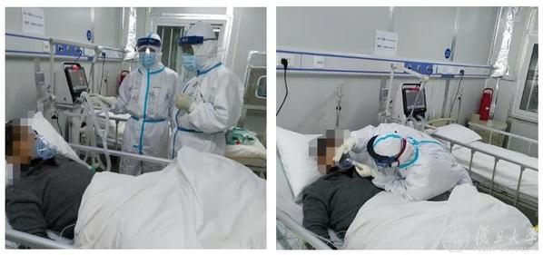 (第二天接收15位患者,其中一位危重症患者,刚下救护车就缺氧全身紫绀,情况非常危急。我们立即用呼吸机无创通气,在机械通气过程中,呼吸机总是低压报警。因为穿着防护服,带着两层手套,无法通过皮肤感受到气流。杨艳君护士为了看清楚哪里漏气,拼命地凑到面罩旁边。当时,我们还没有拿到护目镜,只有面屏,无创通气对医护人员是有危险的。在这种危急时刻,医护人员总是把患者生命放在第一位,我们短短20分钟就把患者从死神手中夺了回来。)