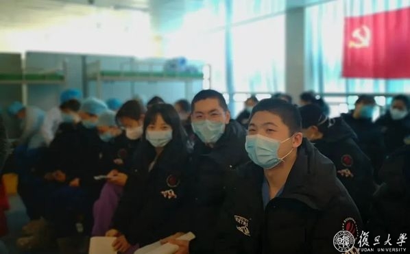 这是在2月9日,复旦大学附属华山医院援鄂医疗队第四纵队出征武汉时,急诊科队员剃完头发所拍摄的照片,左二为华山医院抗新冠肺炎青年突击队队员张叶麒,就在3月29日晚,97年出生的他光荣地火线入党,成为了前线入党者中年龄最小的一位。