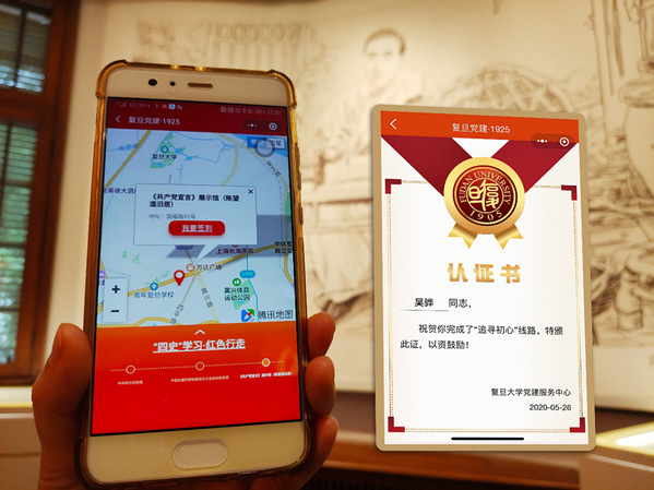 昨天,复旦大学举行“四史”学习教育·红色行走主题党日。全国和上海市党建工作标杆院系、样板支部、“双带头人”党支部书记工作室的党员们依托新上线的“复旦党建·1925”小程序,通过红色定向行走、线上线下联动,带动全校基层党组织创新方式开展“四史”学习教育。
