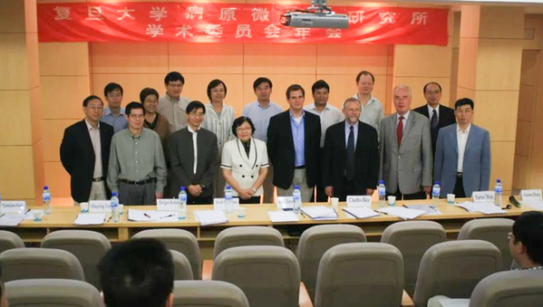 查尔斯·赖斯(前排右三)参加医学分子病毒学重点实验室学术委员会会议