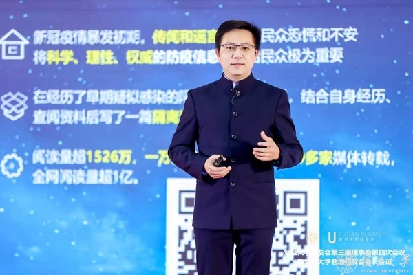 11月28日下午,由复旦大学校友会主办的“复旦人的战‘疫’演说会”在上海举办,同时以“全球云直播”的方式进行,线上逾万人观看了演说直播。