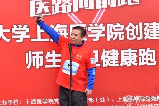 复旦大学校长、党委副书记,上海医学院院长金力为比赛鸣枪发令