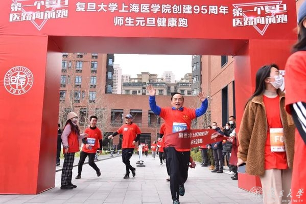 2022年1月1日,复旦大学上海医学院创建95周年,师生元旦健康跑热力开跑。