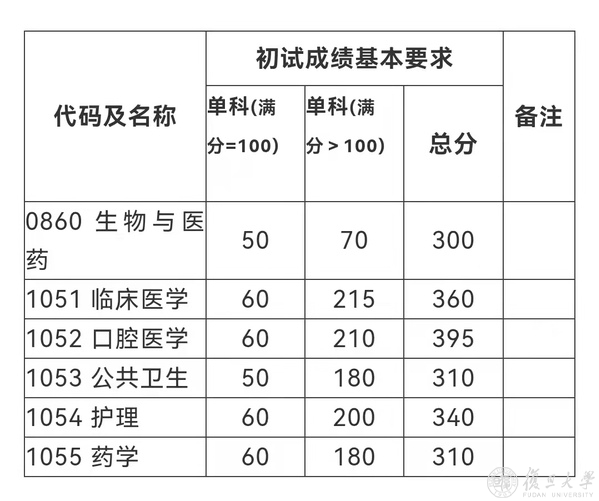 04专业学位初试成绩基本要求(上海医学院)
