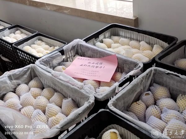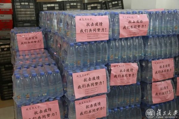 这是在上海市妇女联合会的牵头下,上海市儿童基金会携手上海市女企业家协会为复旦师生和抗疫保障人员提供的生活物资。