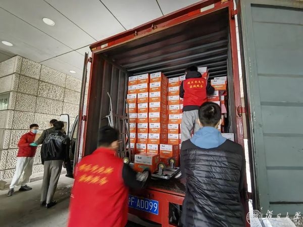 物资一到,学校办统筹,外联处联络,保卫处、总务处立即行动起来,协助车辆进校和消杀,学研工部组织学生志愿者卸货搬运分发……一气呵成,有问必答。经过磨合,校内协作早已默契,物资工作群密集信息里,一个个向春而行的忙碌身影,传递着关于春天的信仰。