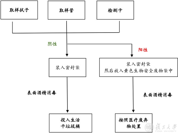 ①检测结果阴性的,使用后的所有鼻拭子、采样管、检测卡等装入密封袋中后作为生活垃圾处理;