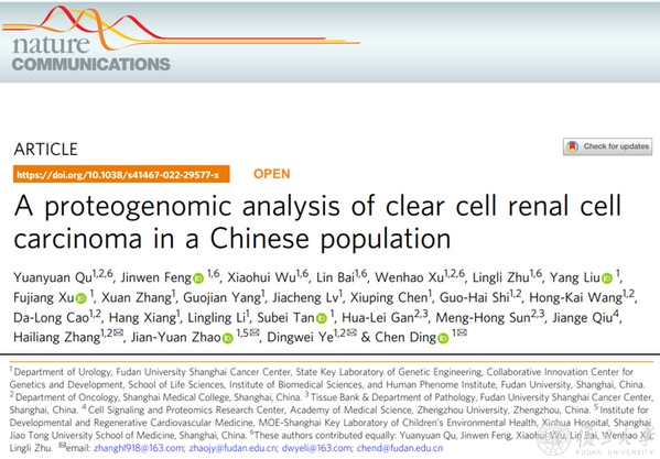 叶定伟教授团队携手丁琛、赵健元团队绘制国人肾透明细胞癌蛋白质基因图谱