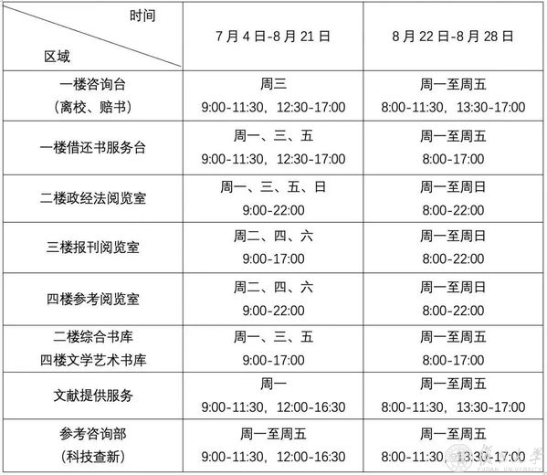 7月4日至8月28日期间开放第二教学楼二楼教室自修。开放时间:7:00-22:30