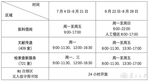 7月4日至8月28日期间开放Z2教学楼2楼教室自修。开放时间:7:00-22:30张江教学楼物业值班地点:二教2403电话:51355703