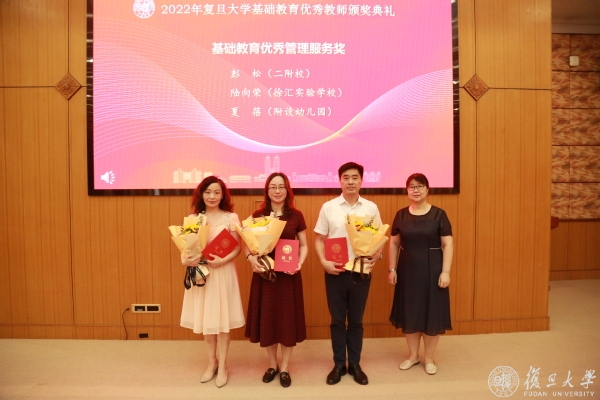 9月8日上午,2022年复旦大学基础教育优秀教师颁奖典礼在逸夫科技楼多功能厅隆重举行,来自复旦大学附属子弟学校、幼儿园的20位优秀个人、3个优秀教书育人团队获得表彰。