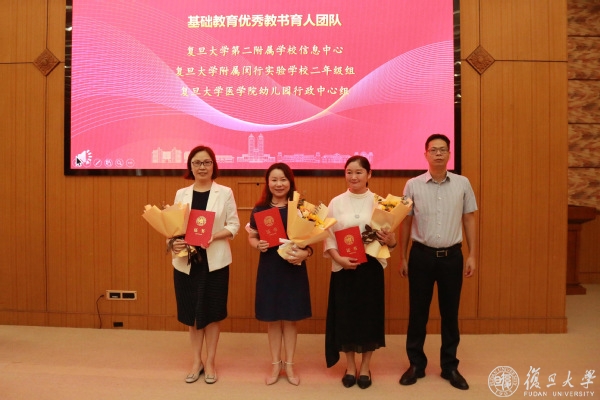 2021年起,复旦大学在“十佳百优”表彰体系中设置“基础教育优秀教师(团队)”专项奖励,每年选树表彰宣传复旦大学附属中小学幼儿园教师队伍中的先进个人和团队,激励广大基础教育教师奋发有为,努力为学校“双一流”建设做好支撑保障。