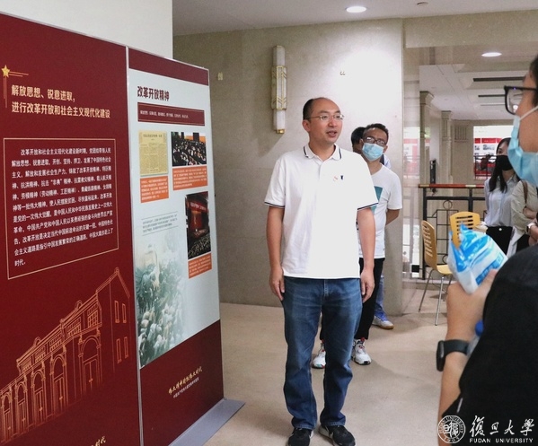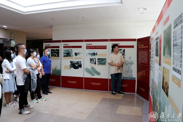 9月26日下午,大气与海洋科学系教职工党支部集体参观了位于邯郸校区光华楼三楼大厅的“伟大精神铸就伟大时代--中国共产党伟大建党精神专题展”。党支部新进教师党员姚波、丁硕毅、符昊、博士后党员冯小芳以及入党积极分子闵庆烨共5位同志作为讲解员,为在场党员同志们带来了精彩的解说。